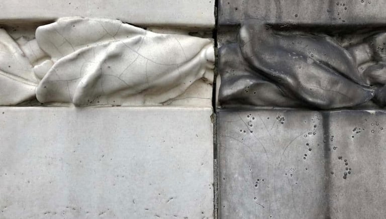 Recuperamos obras y esculturas con precisión, respetando su integridad original. Es un método más suave y eficaz para restaurar la belleza de tesoros arquitectónicos históricos, como esculturas, estatuas de bronce, terracota ornamentada y fachadas enteras de edificios. Además de lápidas y mobiliario urbano.